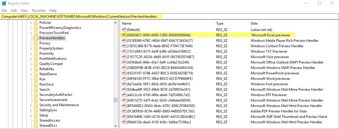 HKEY_LOCAL_MACHINE\SOFTWARE\Microsoft\Windows\CurrentVersion\PreviewHandlers