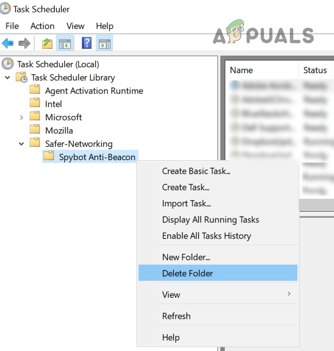 Delete the Spybot Anti-Beacon Folder in the Task Scheduler - Confirm the deletion and close Task Scheduler.