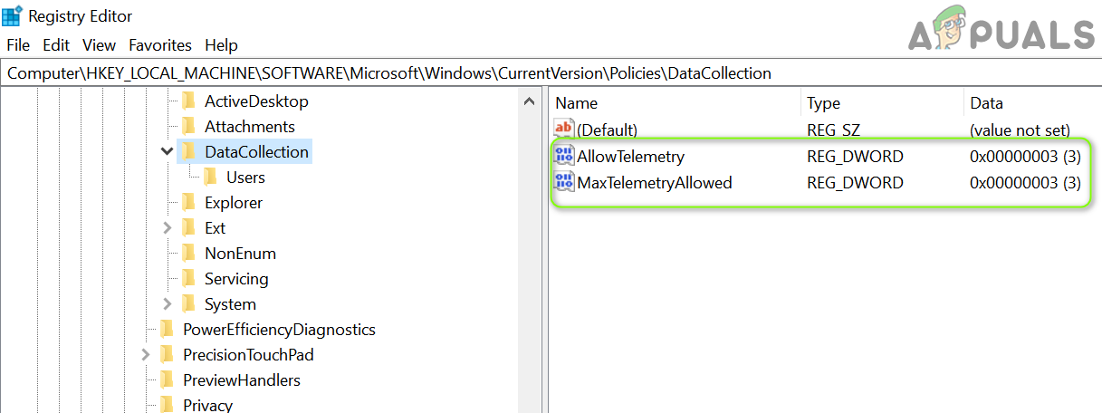 HKEY_LOCAL_MACHINE\SOFTWARE\Microsoft\Windows\CurrentVersion\Policies\DataCollection