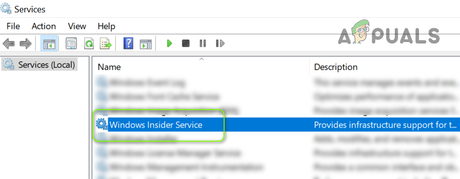 Change the Startup Type of Device Management Wireless Application Protocol (WAP) Push Message Routing Service and Start it - If the issue persists, enable and start the Windows Insider Service as well.