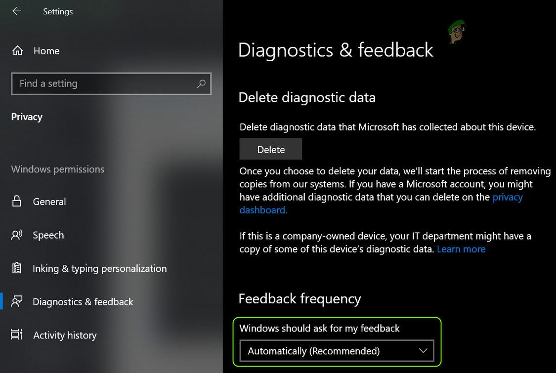 - Open Privacy and, in the left pane, go to Diagnostics & Feedback.