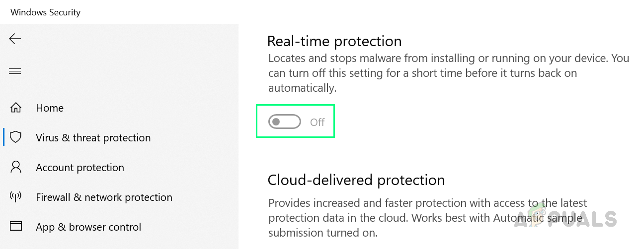 Opening Virus and Threat Protection Settings - Turn off Real-time protection. This temporarily disables Windows antivirus protection and lets Zoom access the internet without being blocked.