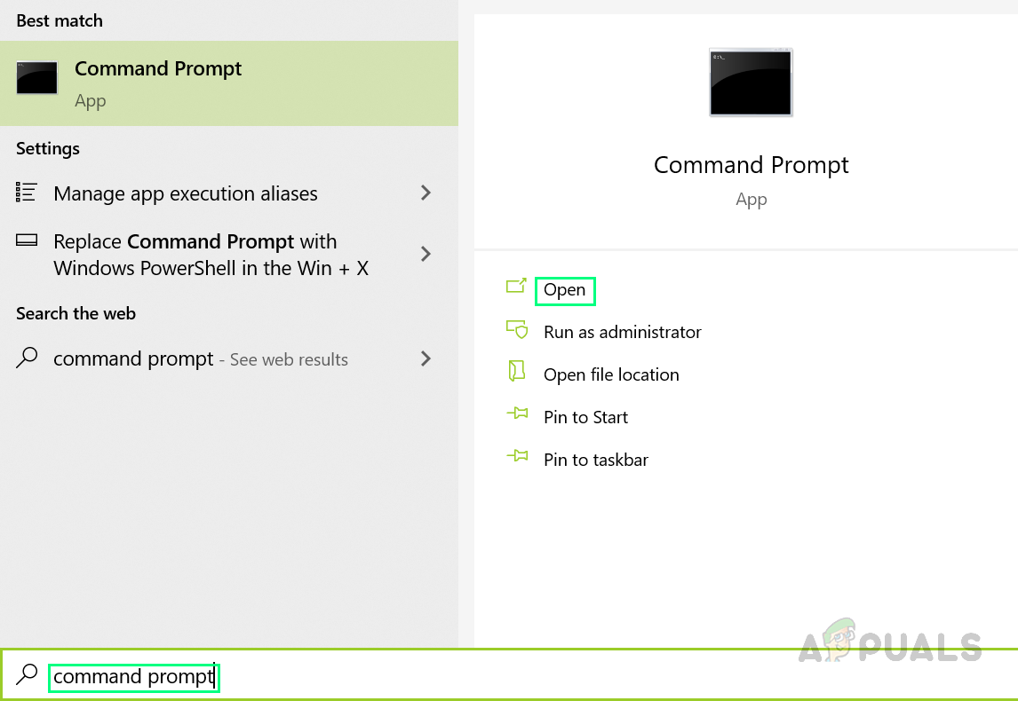 - Click Start, search Command Prompt, and open it (preferably Run as administrator). This opens the Command Prompt.