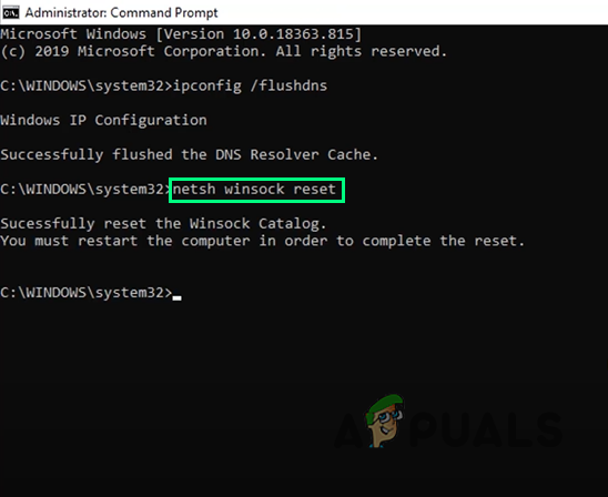 Resetting DNS Cache - Again, copy and paste the command below and press Enter. This resets network settings to default. Close Command Prompt afterward.