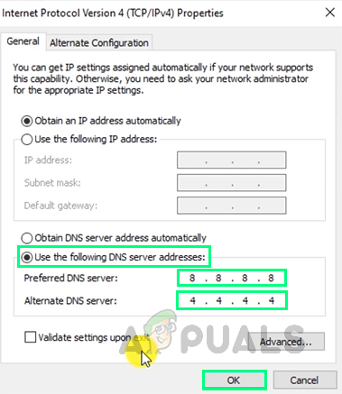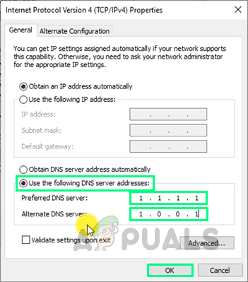 Opening Adapter Settings - For Ethernet, right‑click its adapter and select Properties. Select Internet Protocol Version 4 (TCP/IPv4), then click Properties. Choose Use the following DNS server addresses and enter the DNS server addresses shown in the image below. Click OK, then Close.