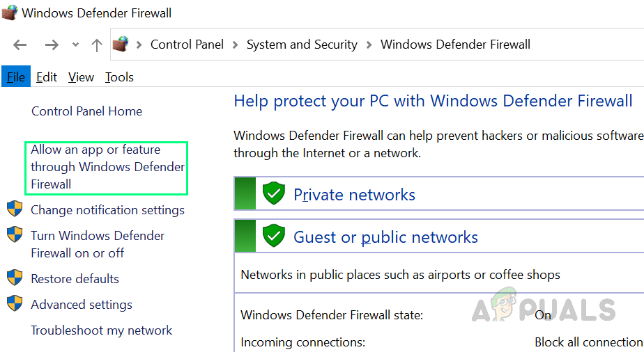 Opening Windows Defender Firewall - On the left panel, click Allow an app or feature through Windows Defender Firewall. You’ll see a list of installed programs you can allow or block.