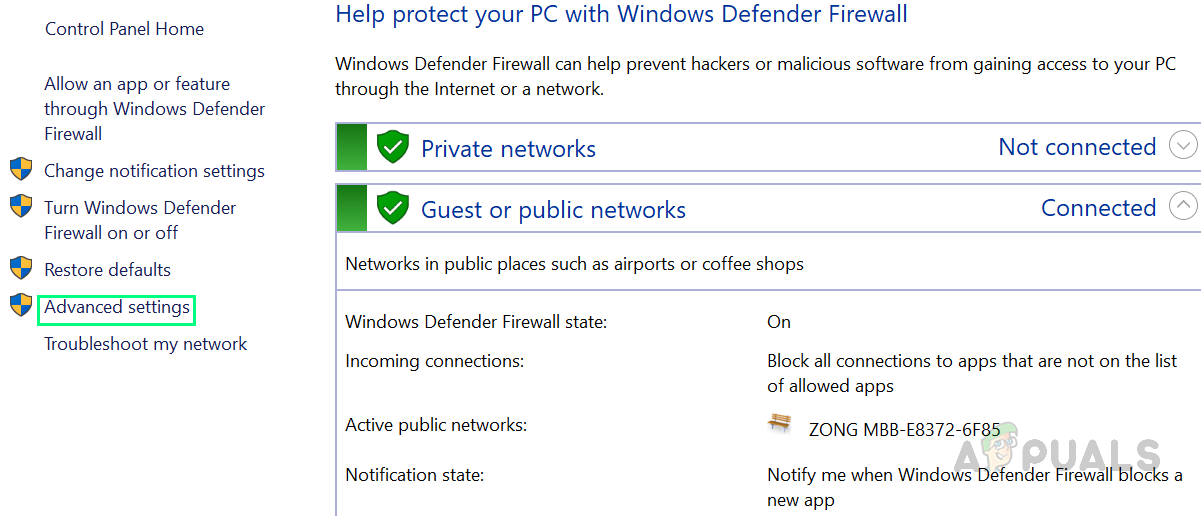Allowing the Zoom App through Firewall - Go back to the main Windows Defender Firewall page and, on the left, click Advanced settings for more detailed options.