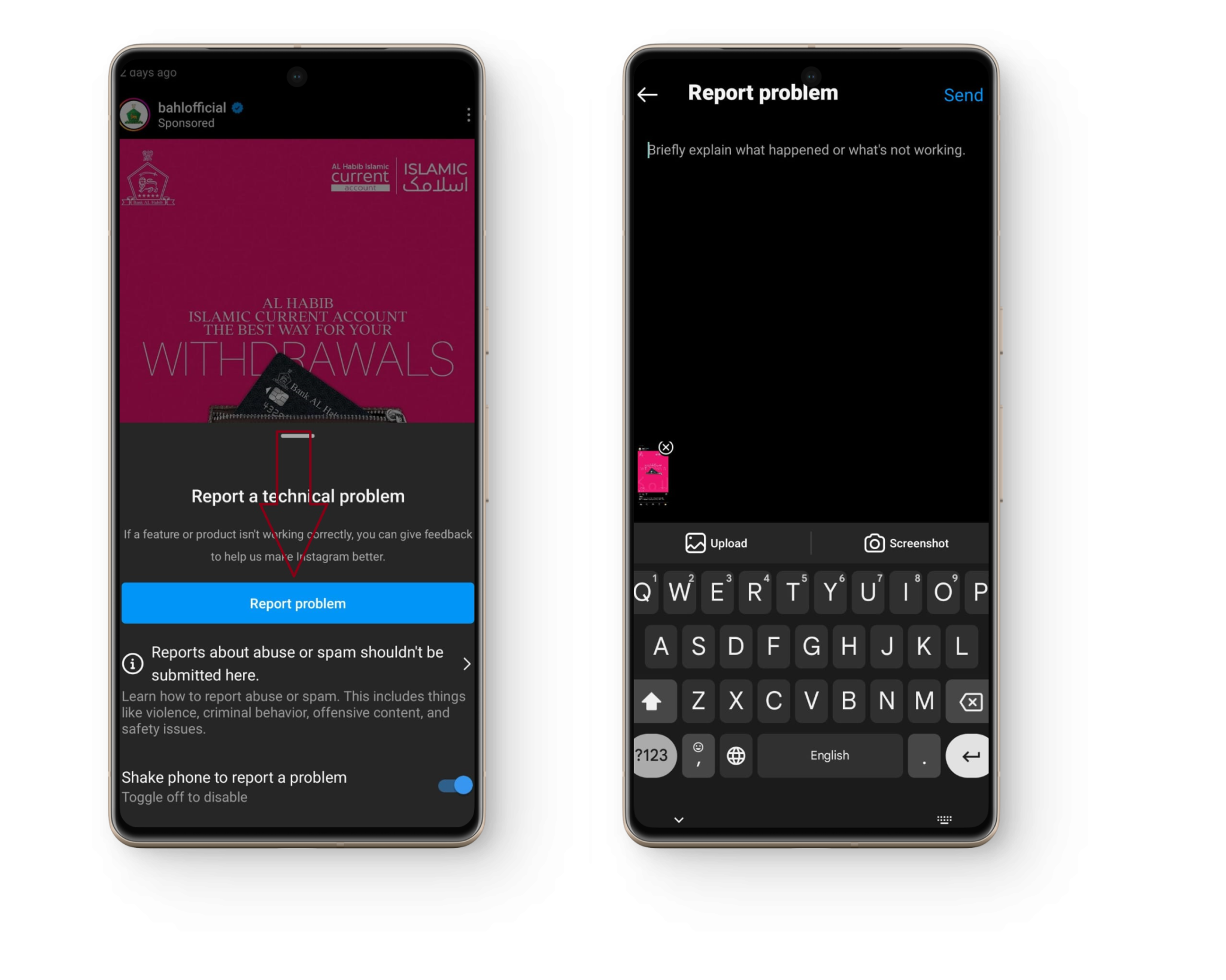 If you’ve tried all the suggestions above and the issue remains, submit a report to Instagram. Open Instagram and shake your phone left and right. Tap Report problem in the pop-up. Write a short summary of the issue and upload relevant screenshots. Submit the report, and hopefully support will get back to you soon.