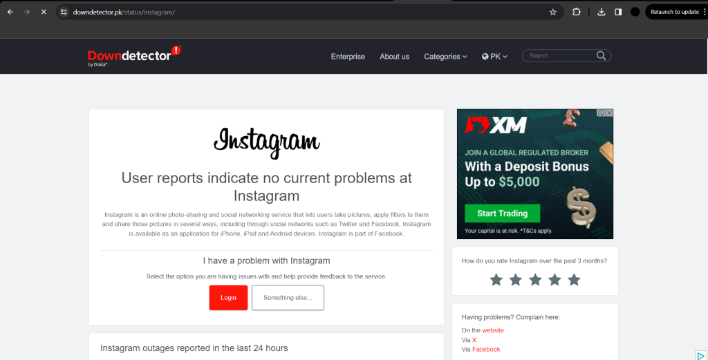 Another thing to check is the status of Instagram’s servers. Sometimes, you can’t follow people because Instagram’s servers are down. Visit DownDetector to see if there are outages in your region. If there is an outage, you’ll need to wait until services are restored.