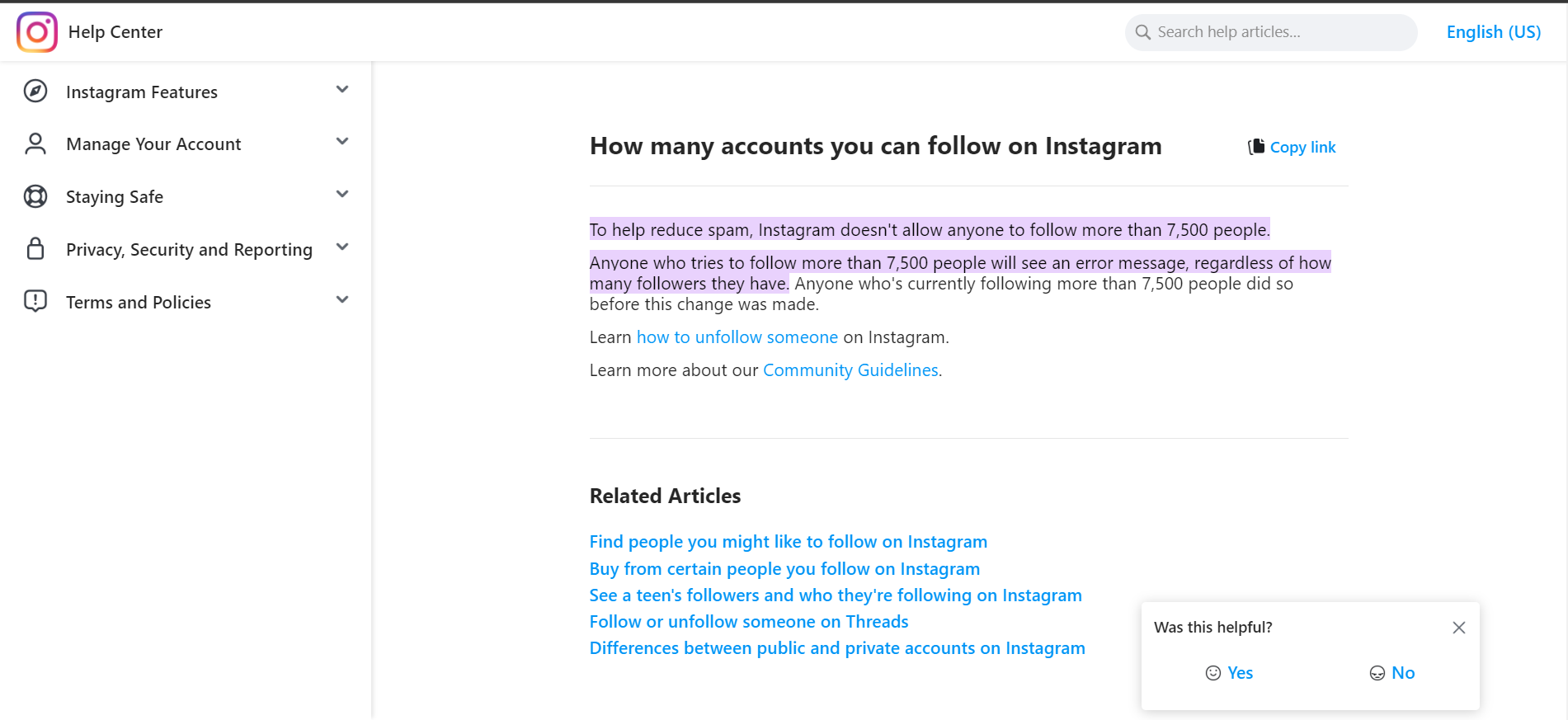 Many users don’t know this, but there’s a limit to how many accounts you can follow. According to Instagram, “To help reduce spam” they do not allow users to follow more than 7,500 accounts. If you’re close to that number, consider unfollowing some accounts before following new ones.
