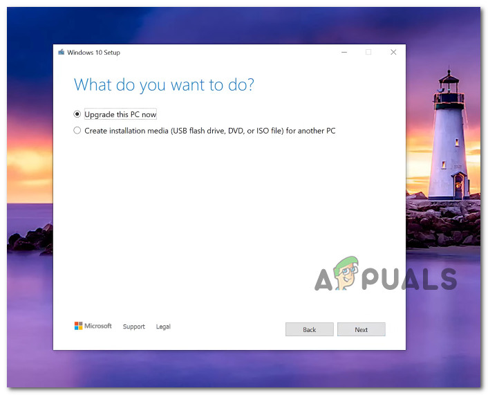 Upgrade this PC now - Now, wait until the Windows ISO is downloaded, then click Accept. You will need to wait until every update is downloaded locally so that the Media Creation tool can upgrade your OS to the most recent version.