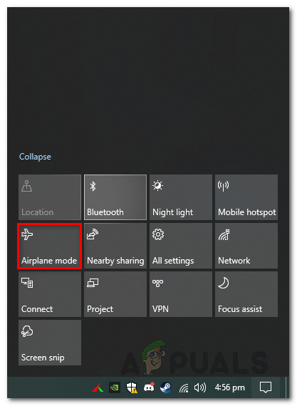 The first thing that you should do when you face the issue in question is to simply turn on airplane mode on your Windows machine. Airplane mode is a feature that essentially disables some hardware features on your device so that it is only able to perform the basic functions. In Windows or any other device, Airplane mode will disable the Bluetooth, along with other wireless functions. This includes Wi-Fi as well so if you are on a wireless connection, that will be disabled as well while airplane mode is on. In short, airplane mode stops all signal transmission from your device, and thus, you are only able to perform limited functions on your machine.