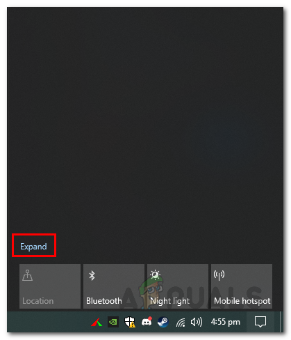 Expanding Notification Area Options - Once you have done that, click on Airplane mode to turn it on.