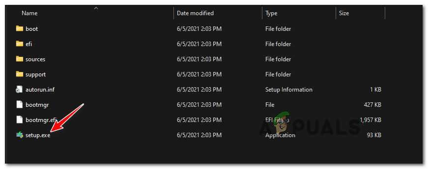 - Once the ISO is mounted, double-click on the setup.exe file from the root folder.