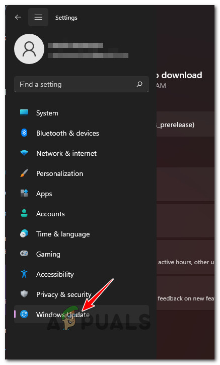 - Inside the Settings menu of Windows 11, use the vertical menu on the left to click on Windows Update.