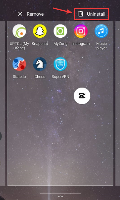 - If updating doesn’t solve the problem, uninstall the CapCut app by pressing and holding the CapCut icon, then selecting Uninstall.