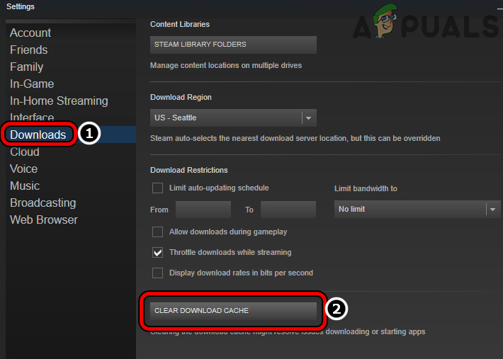 Also, no Destiny 2 update will be served from the servers to the device or platform as the update (although corrupt) is already present on the device or platform, causing the cat error. In this scenario, clearing the device cache or platform’s download cache may clear the Destiny 2 error at hand. For elucidation, we will go through the process of clearing the download cache of the Steam client.