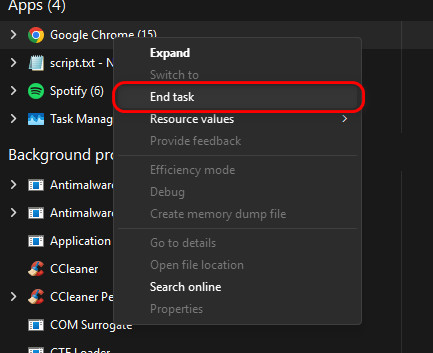 - Right-click on them, and select End Task.
