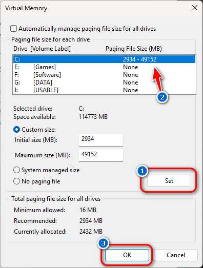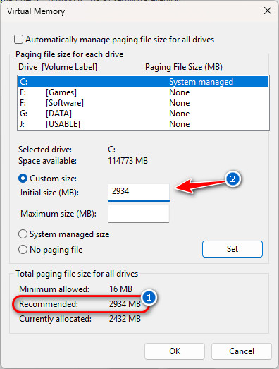 - For Maximum size, multiply your system RAM (e.g., 16GB) by 3 to calculate the maximum size in MB. To do this: