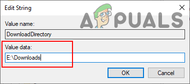 Creating the new value - Open the DownloadDirectory value and then add the folder path in the value data.