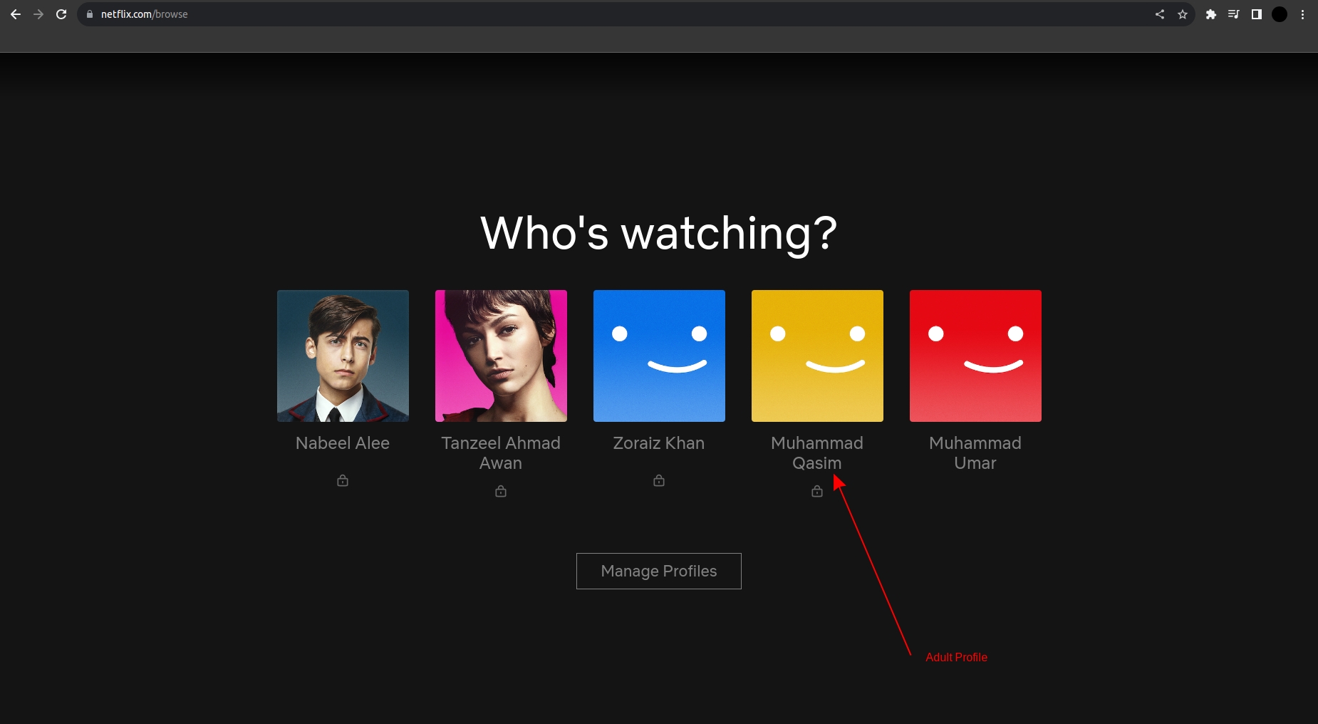 - Visit Netflix and login to your account. In case of multiple profiles, open an adult profile.