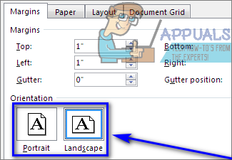 - Under Orientation, click on either Landscape or Portrait depending on what orientation you want the selected page or text to be changed to.
