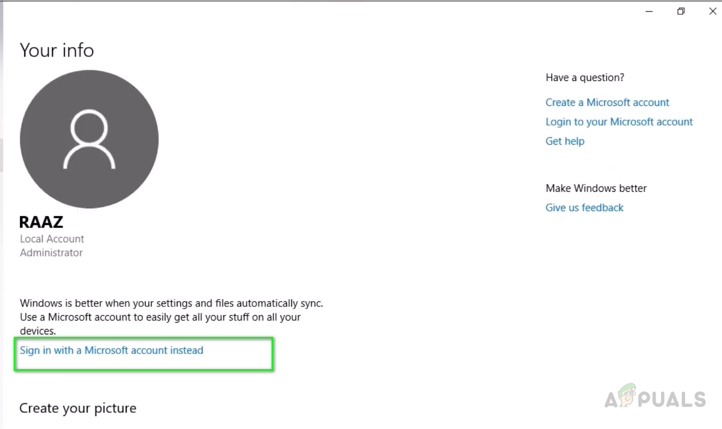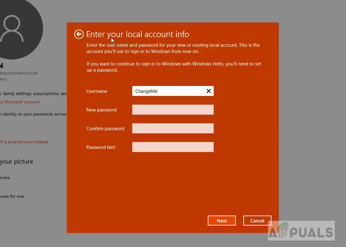 In this method, we will first switch the login account to the one you need to set as a primary account by switching to the Local User Account and then switch back to the Microsoft account of your choice. A local user account is simply a Windows Account that you use to login. To set up this account, you only need a user name and a password and you can even remove the password if you like.