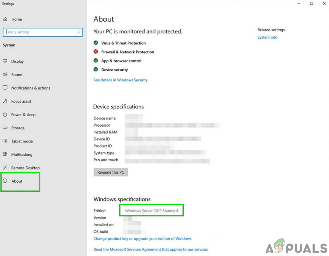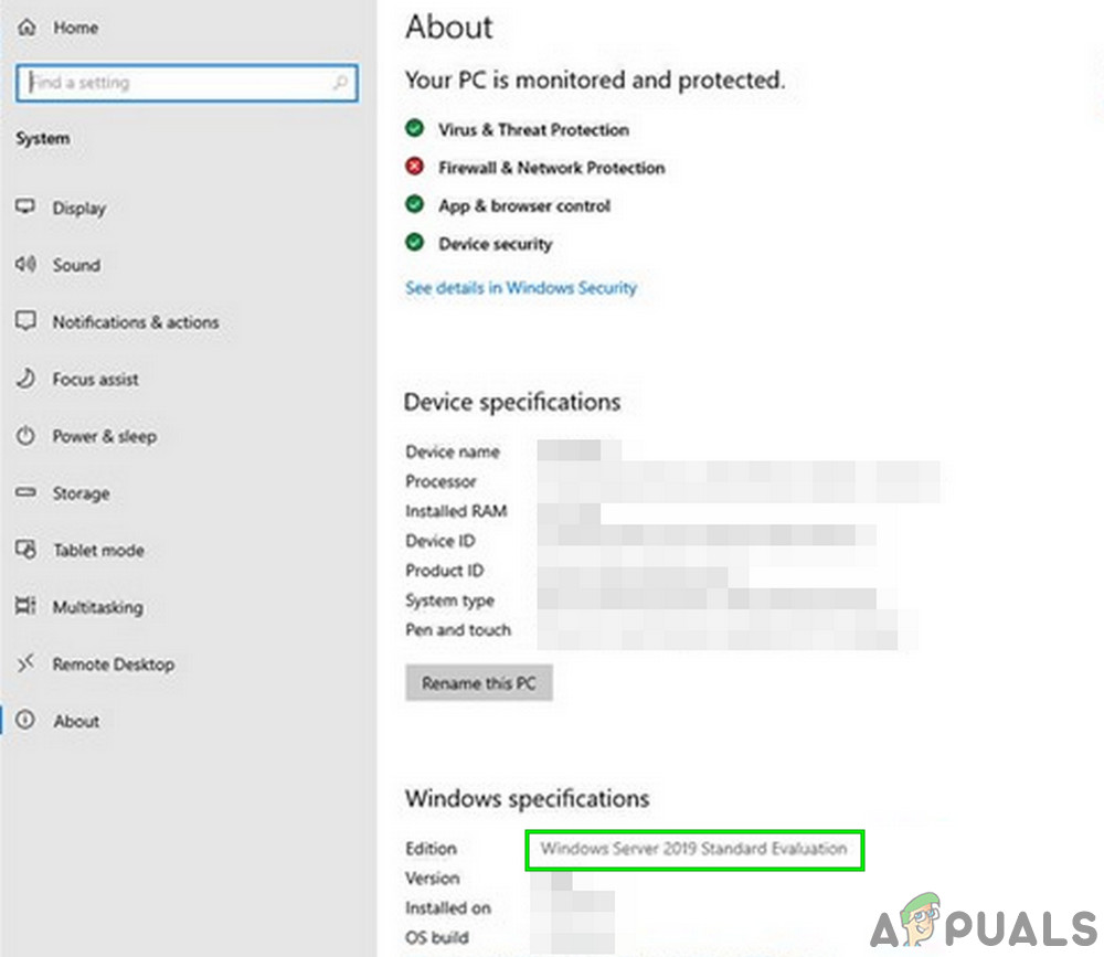 Open System in Windows Settings - In the left pane of the window, click on About and check Edition if it is Windows Server Standard or something similar non-evaluation edition.