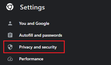 - Navigate to the Privacy and Security section.