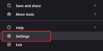 - Select Settings from the drop-down menu.