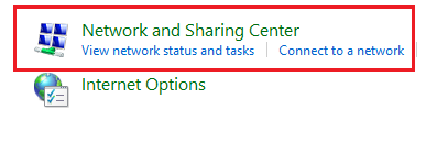 - Choose the Network and Sharing Center.