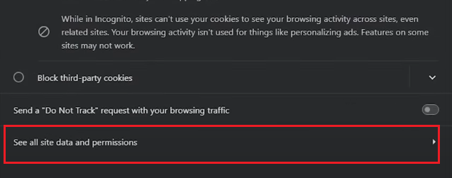 - Choose the See All Site Data and Permissions option.