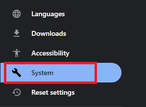 - Scroll to the bottom of the settings page and select the System option.