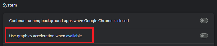 - Find the Use hardware acceleration when available setting.