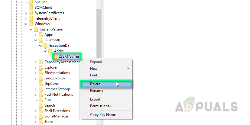As discussed previously, this problem mainly occurs when the user is trying to add the device that was deleted previously from PC devices. Technical reasoning would be the old connectivity address between the device and PC still remains which is prohibiting a new connection establishment. This problem can be fixed by deleting corrupted connection addresses under Addrs in Windows Registry Editor, follow the steps given below: