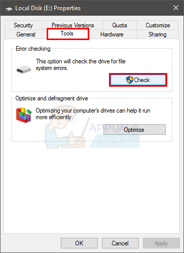 - Click Check button in the Error Checking section. If you have Windows 7 then the button name will be Check Now.
