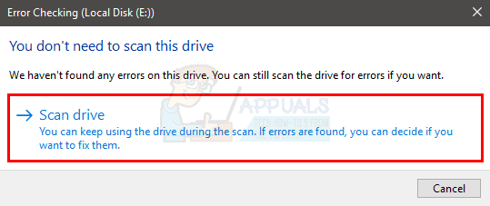 - You might see a dialogue telling you that you don’t have to run the scan. You can close the dialog and go back to your normal usage or you can click Scan drive to forcefully run the chkdsk utility. Note: Once you click the button and you have Windows 7, you might see a new dialog with Automatically fix file system errors option and Scan for and attempt recovery of bad sectors You can select deselect both of these options or select the one suitable for you or select both of these options. Once done, click Start to start the scan. Keep in mind that running chkdsk with both options will take a lot of time, probably a few hours.