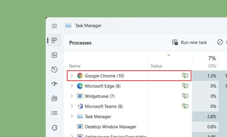 The most straightforward way to disable Efficiency Mode for Chrome is via the Task Manager.