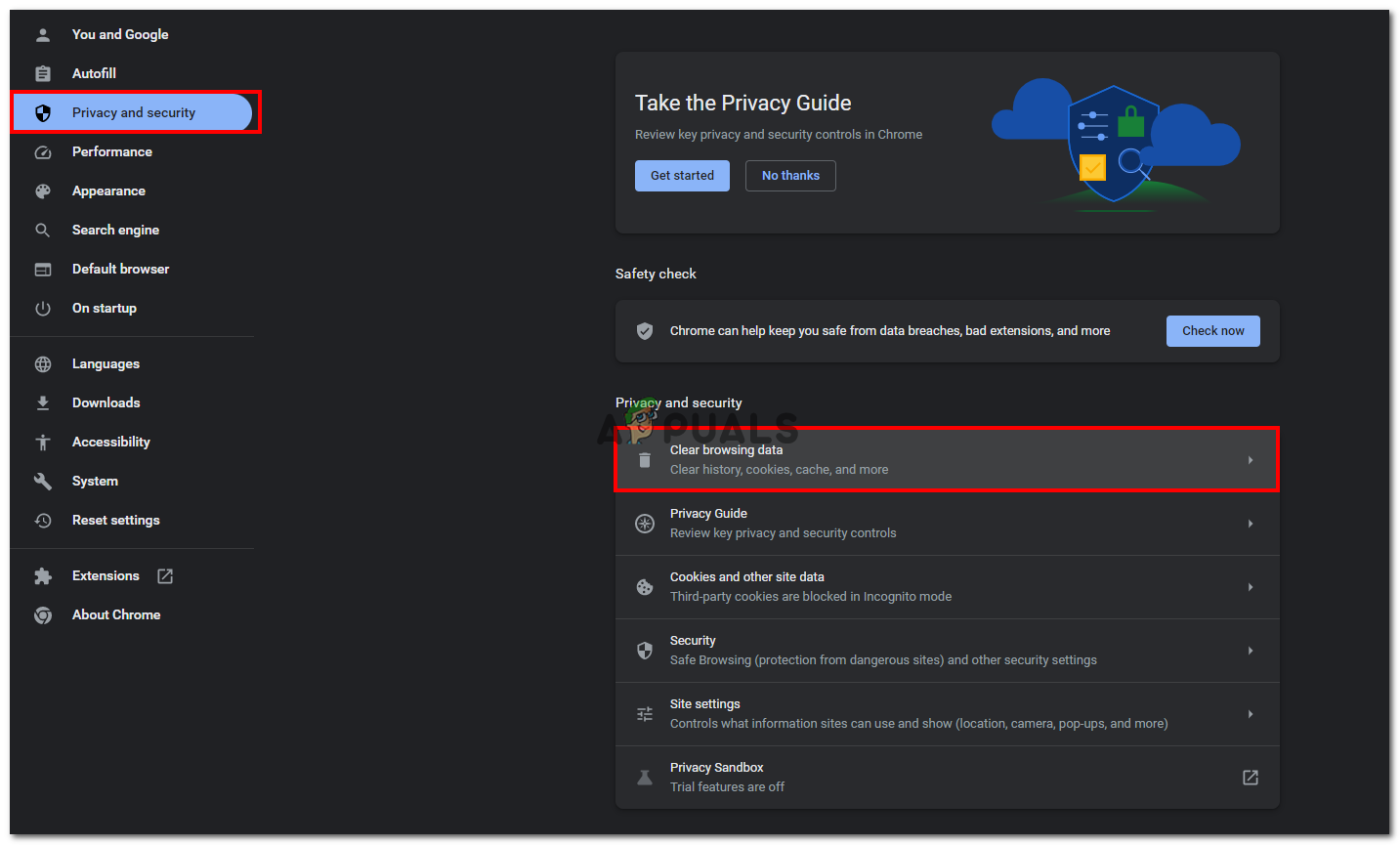 - Click on Clear Browsing Data under the Privacy and Security setting.