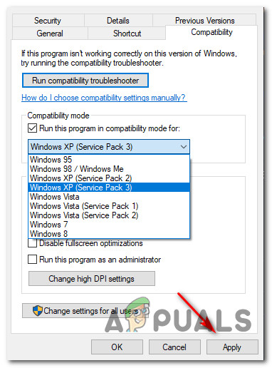- Once you’re inside the Properties screen, click on Compatibility, then go to Compatibility mode and check the box where it says ‘Run this program in compatibility mode for:’.