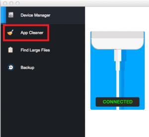 - Once you’ve made sure that the iOS device successfully connected to your MAC, click on App Cleaner. The setting is located directly below Device Manager.