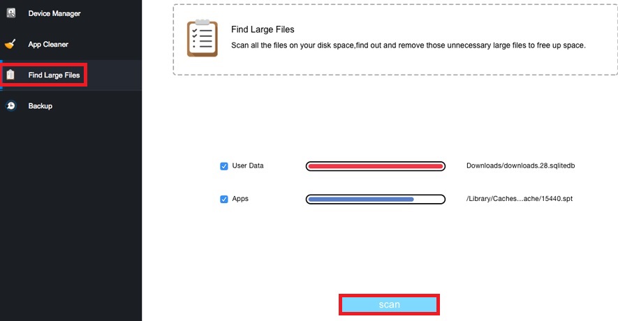 - If you still filled that you need more space after clearing the cache, there’s one more thing you can do with this software. Cisdem iPhone Cleaner is capable of searching for big files telling you if it’s safe to delete them. Just click on Find Large Files and hit Scan. After the query is complete, select which files you wish to delete.