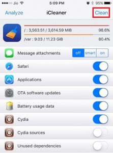iCleaner is more complex than the first tweak, as it’s capable to clear the Safari cache, delete temporary files, remove message attachments and delete cached data from all applications. It’s all done with a single tap. Here’s how to install iCleaner: