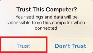 - On your iPhone, tap Trust to enable the connection between the two devices.