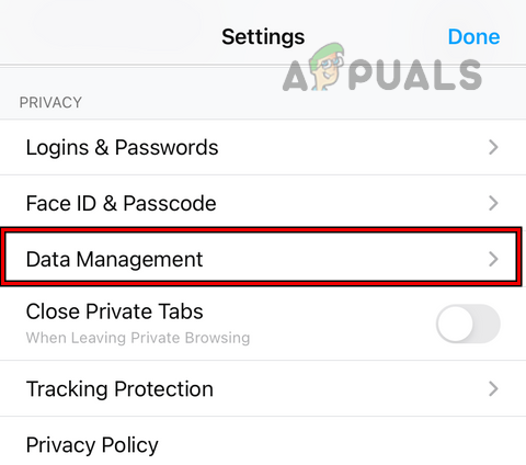 Open Firefox Settings on iPhone - Now select Settings and open Data Management.