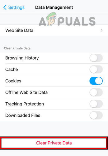 Open Data Management in the Firefox Settings - Then tap on Clear Private Data and afterward, confirm to delete the data.