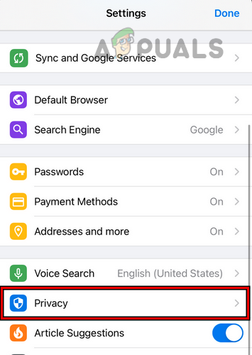 Open Chrome Settings on iPhone - Now open Settings and select Privacy.