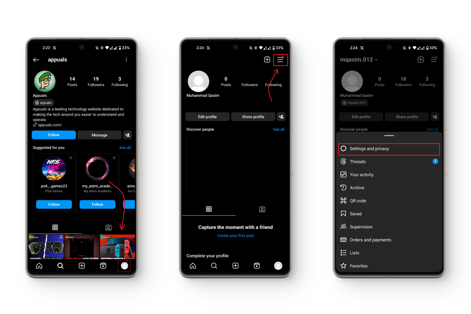 - Open “Settings and privacy.”