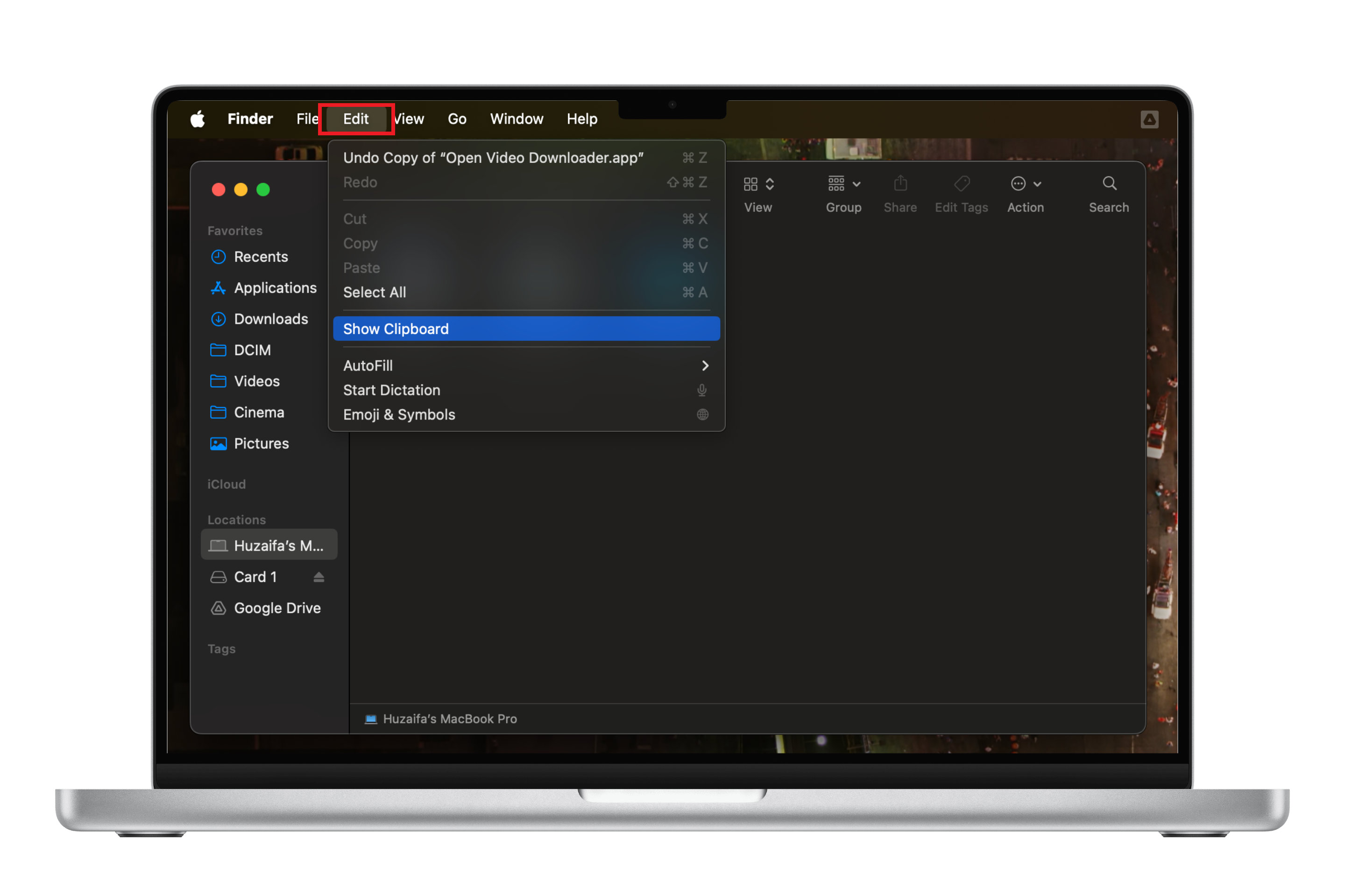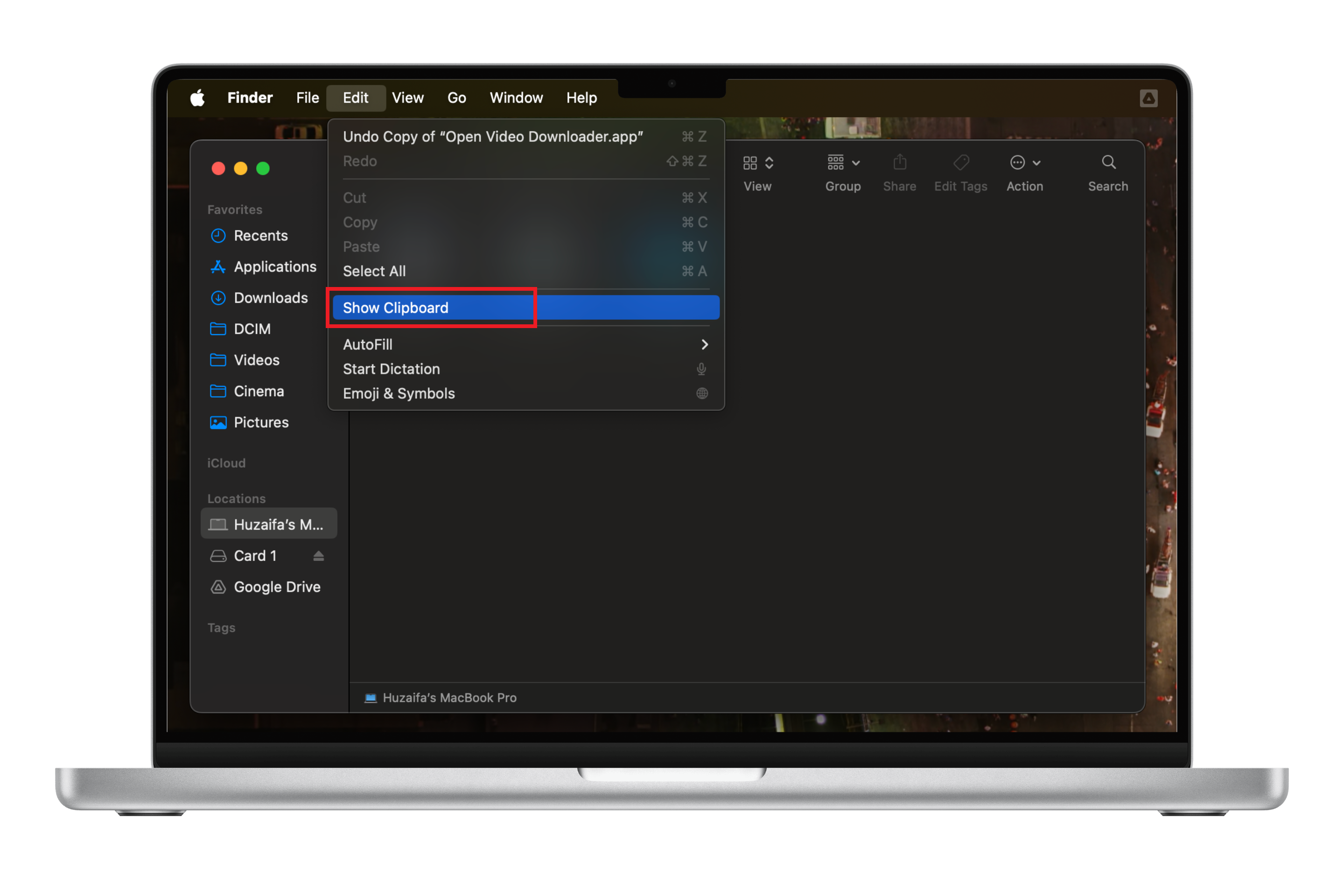 From the dropdown menu that appears, choose “Show Clipboard.” It will display the Mac clipboard. But keep in mind that the clipboard only displays the last item you copied, not a list of the copied items in the past hour or so. This is a disadvantage of Mac’s clipboard, as you can only access what you copied recently.