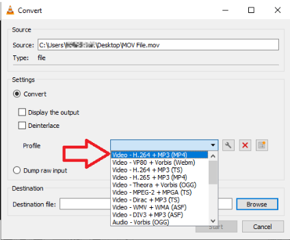- In Profile, select Video – H.264 + MP3 (MP4).